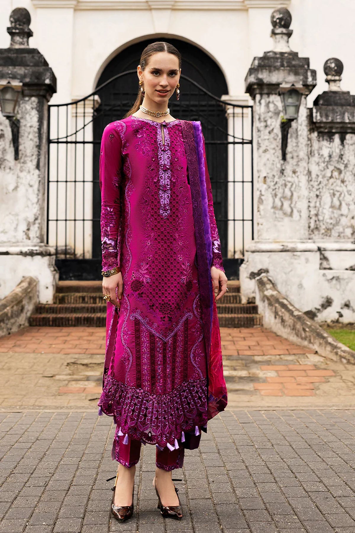 - Chikan embroidered lawn front